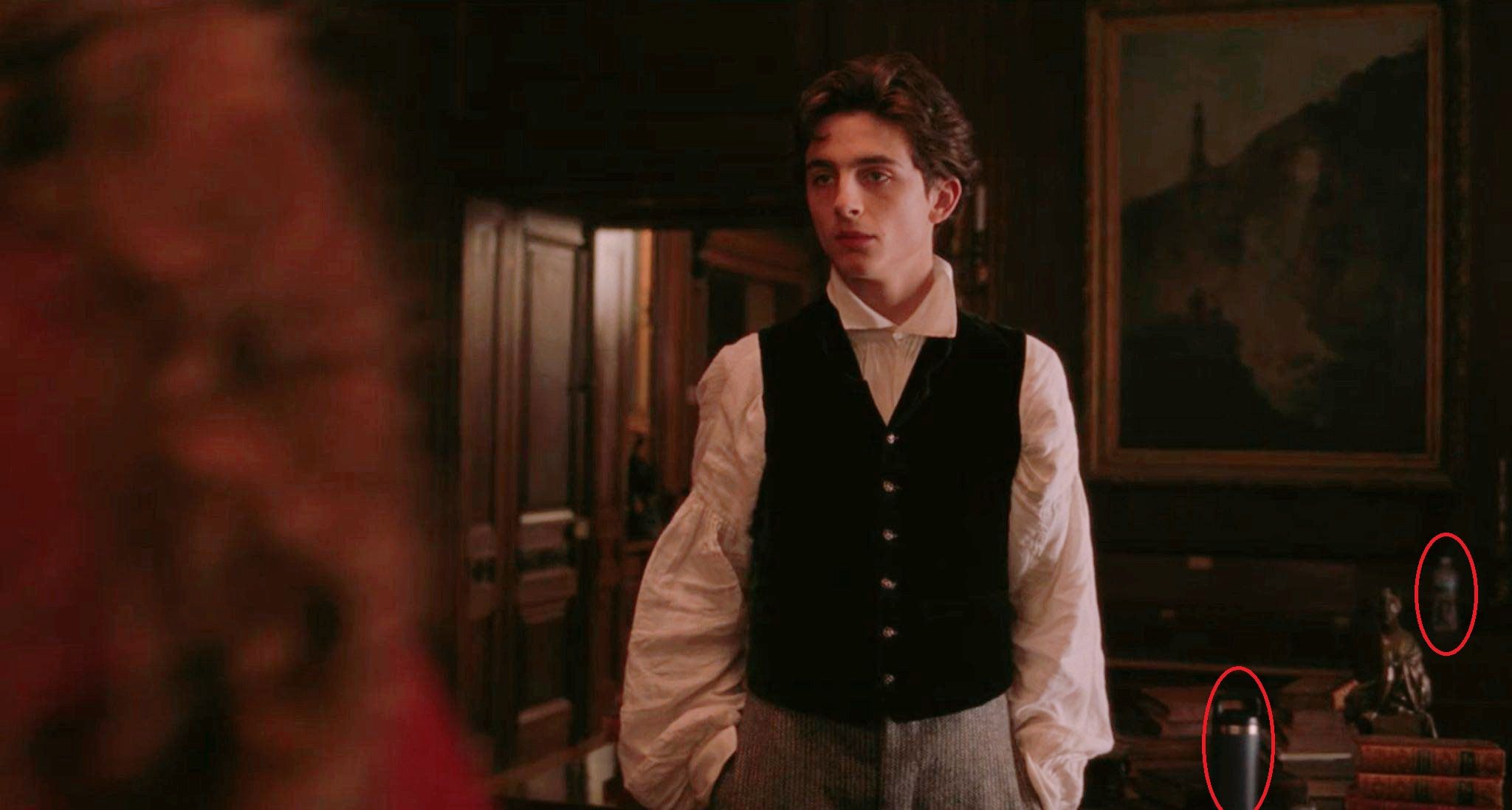 新京报讯(记者 滕朝)近日,被疫情隔离在家的国外影迷闲来无事,却偶然找出了今年奥斯卡提名影片《小妇人》的一场穿帮镜头:马奇家的几个姐妹第一次拜访劳伦斯家的场景中,“甜茶”提莫西·查拉梅身后的桌子上出现了一个保温杯和一个矿泉水瓶。《小妇人》的故事背景发生在19世纪60年代的美国南北战争时期,很显然保温杯和矿泉水瓶的“穿越”出现不合时宜。这让观众想起《权力的游戏》最后一季出现的星巴克咖啡杯的穿帮镜头。>>>《权游》穿帮,龙妈的草药茶变咖啡,HBO称“很抱歉”