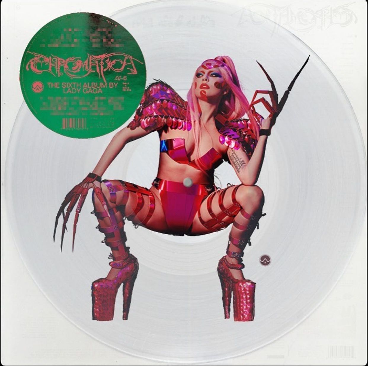 《Chromatica》专辑封面中,Lady Gaga所穿的黑色皮革紧身胸衣、臂膀盔甲和铆钉刺刀高跟鞋来自西班牙设计师Cecilio Castrillo的作品。左脚穿的施华洛世奇水晶串珠流苏獠牙高跟鞋由Gasoline Glamour为其量身打造。 左手所佩戴的骨形长爪来自艺术家Gary Fay Creations定制,右手指甲则源自她长期合作的伙伴 ,日本美甲艺术家Miho Okawara。《Chromatica》专辑的宣传写真中,紫红色盔甲由设计师Laurel DeWitt量身定制,机械爪依然来自Gary Fay Creations的定制。