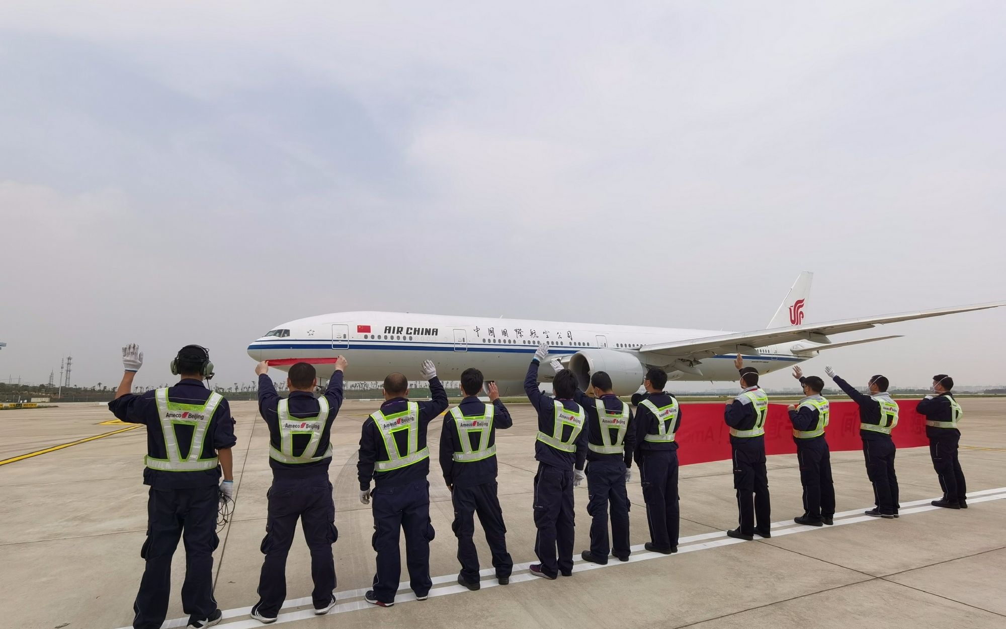 国家援鄂医疗队包机从武汉飞往北京。图片来自国航微博