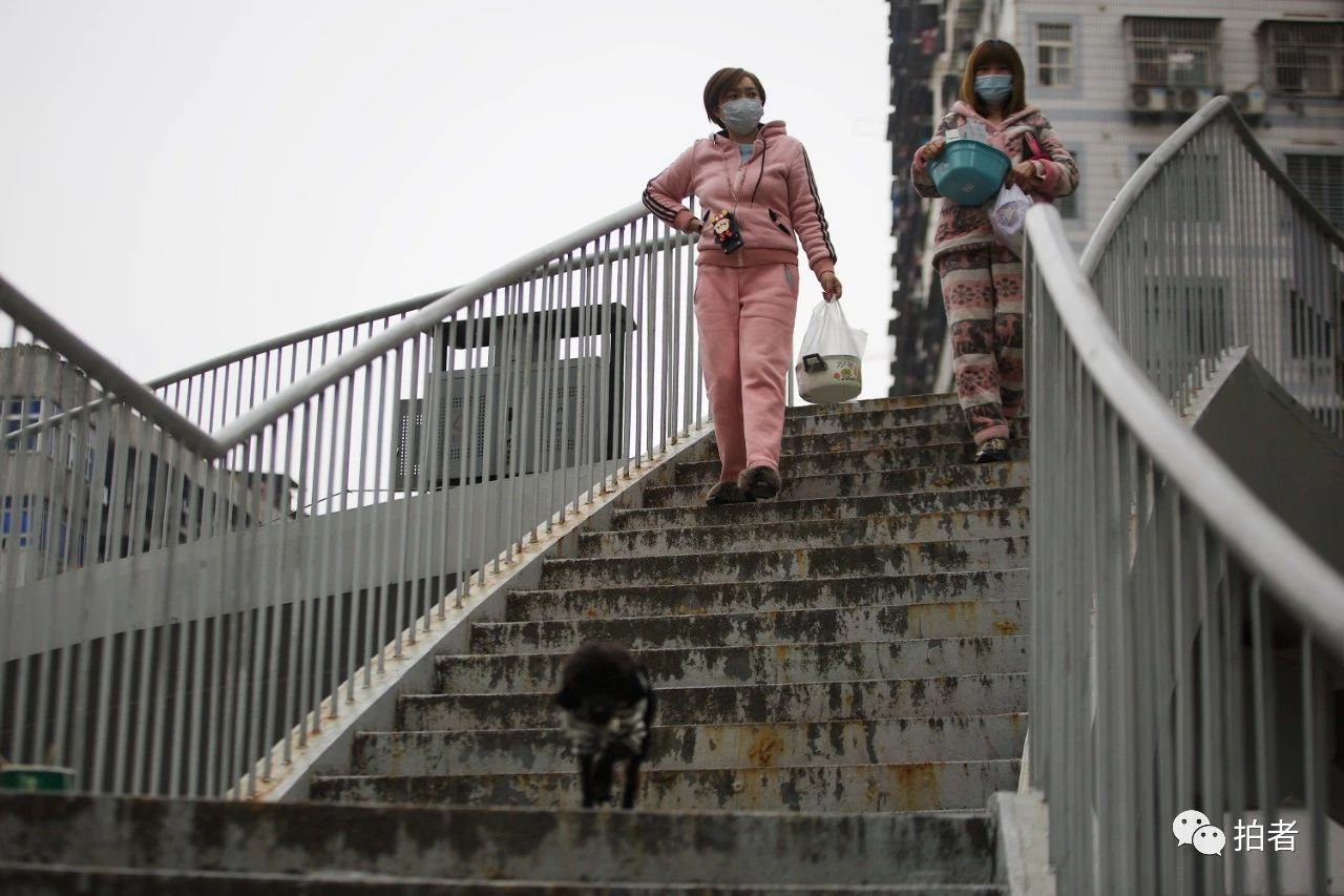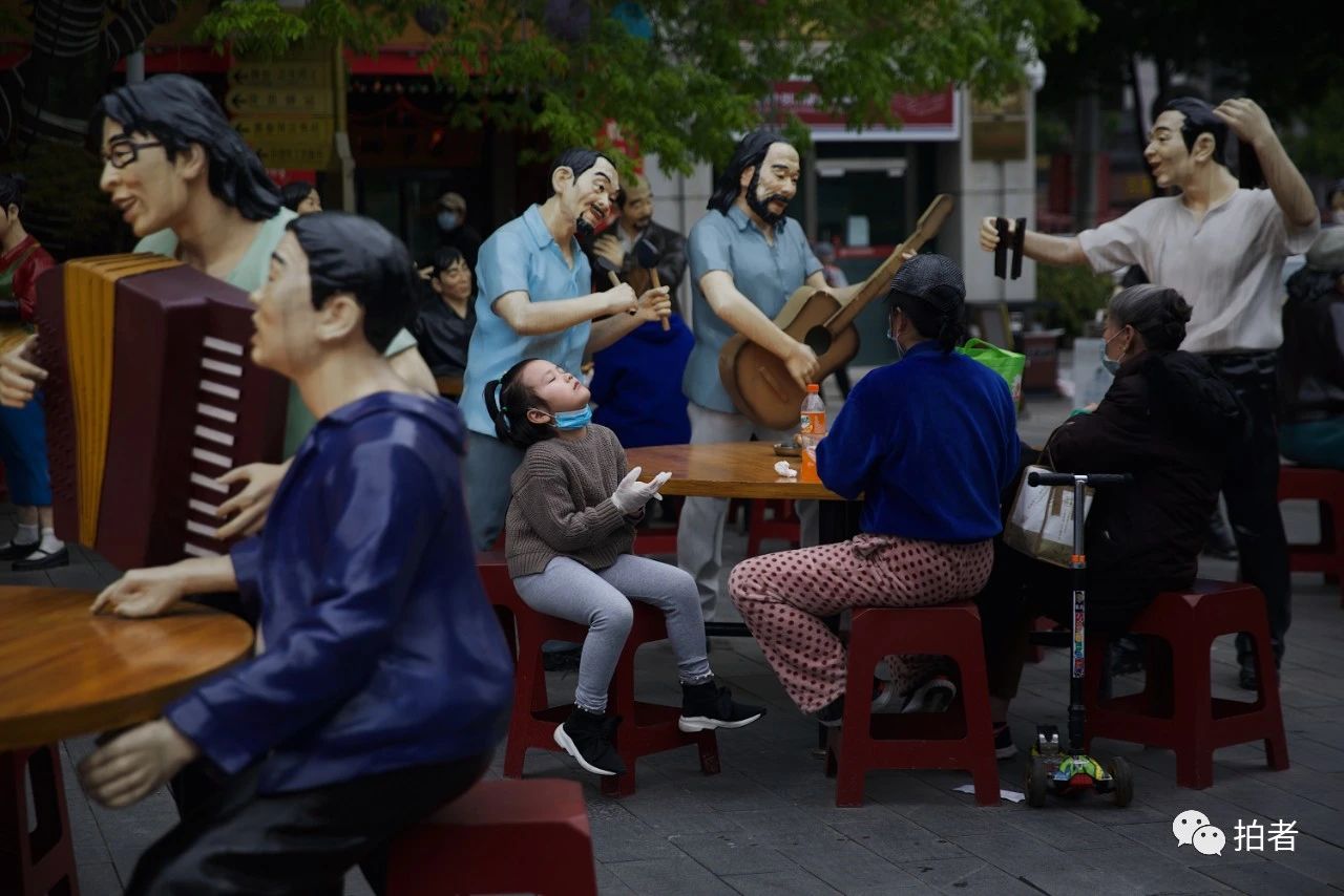 △ 4月2日,武汉吉庆街,小女孩暂时摘下口罩休息。