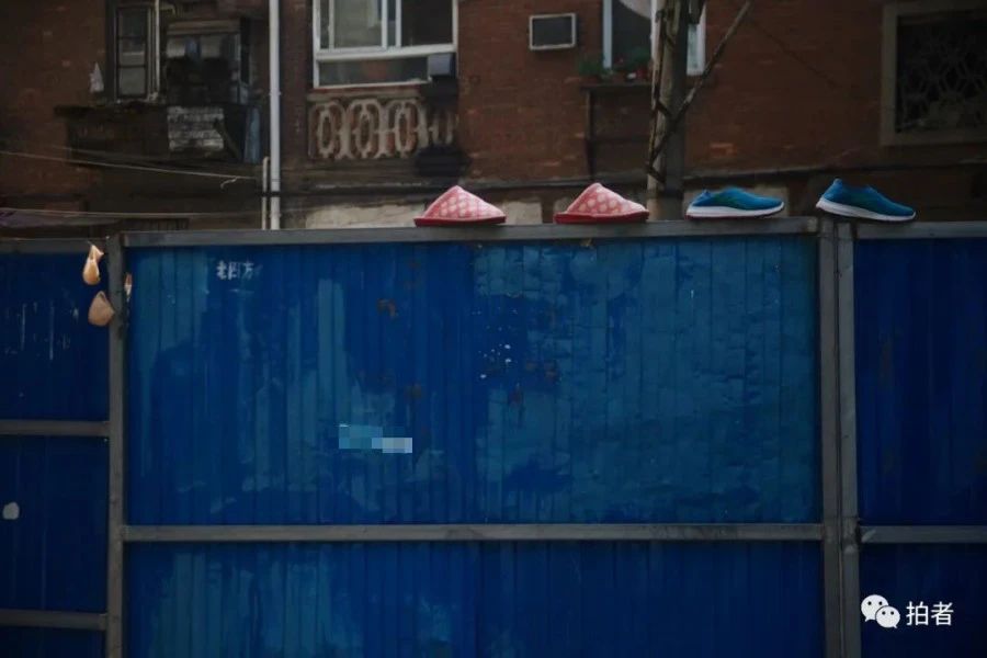 △ 4月6日,莲溪寺路,围挡上放着晾晒的棉鞋。