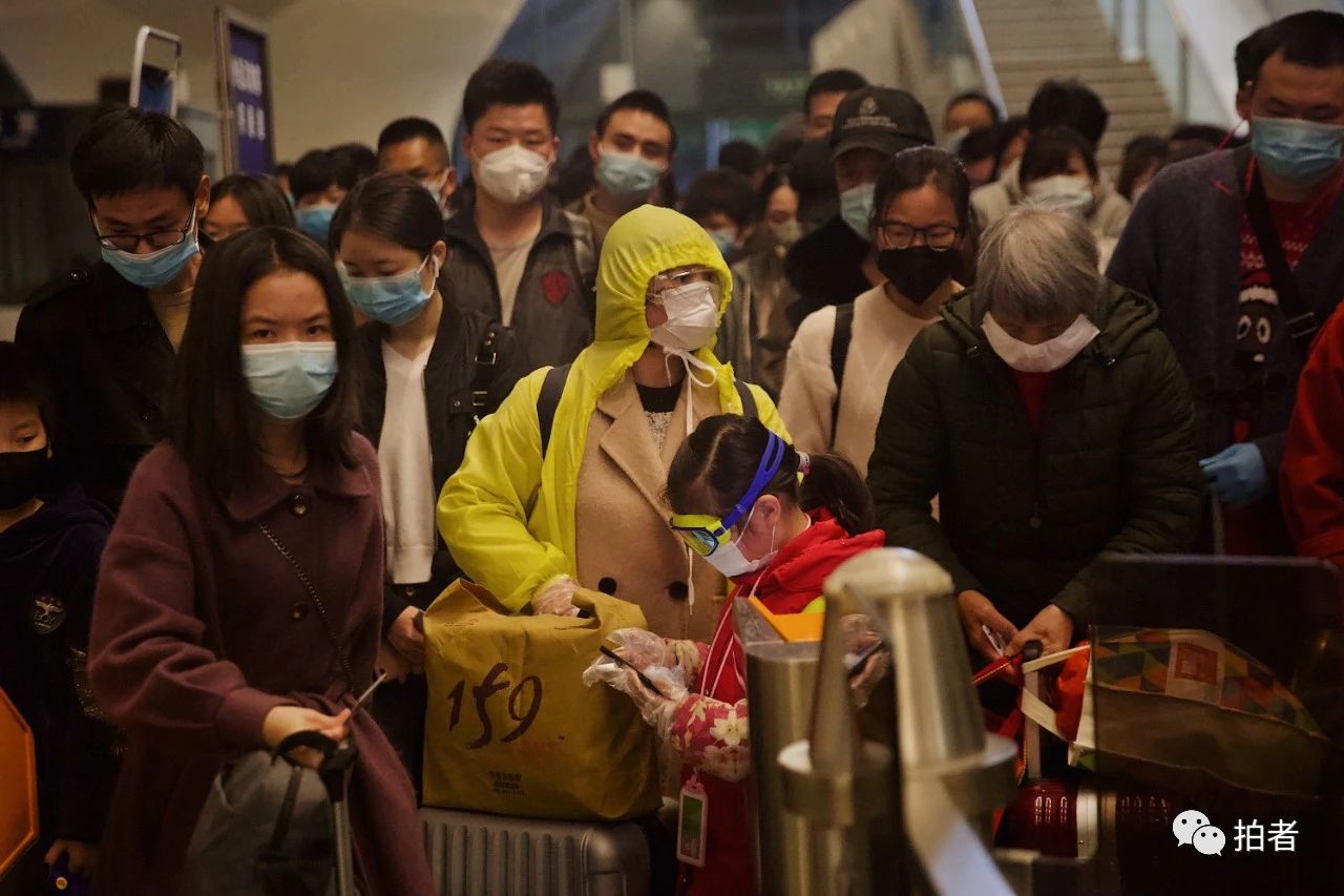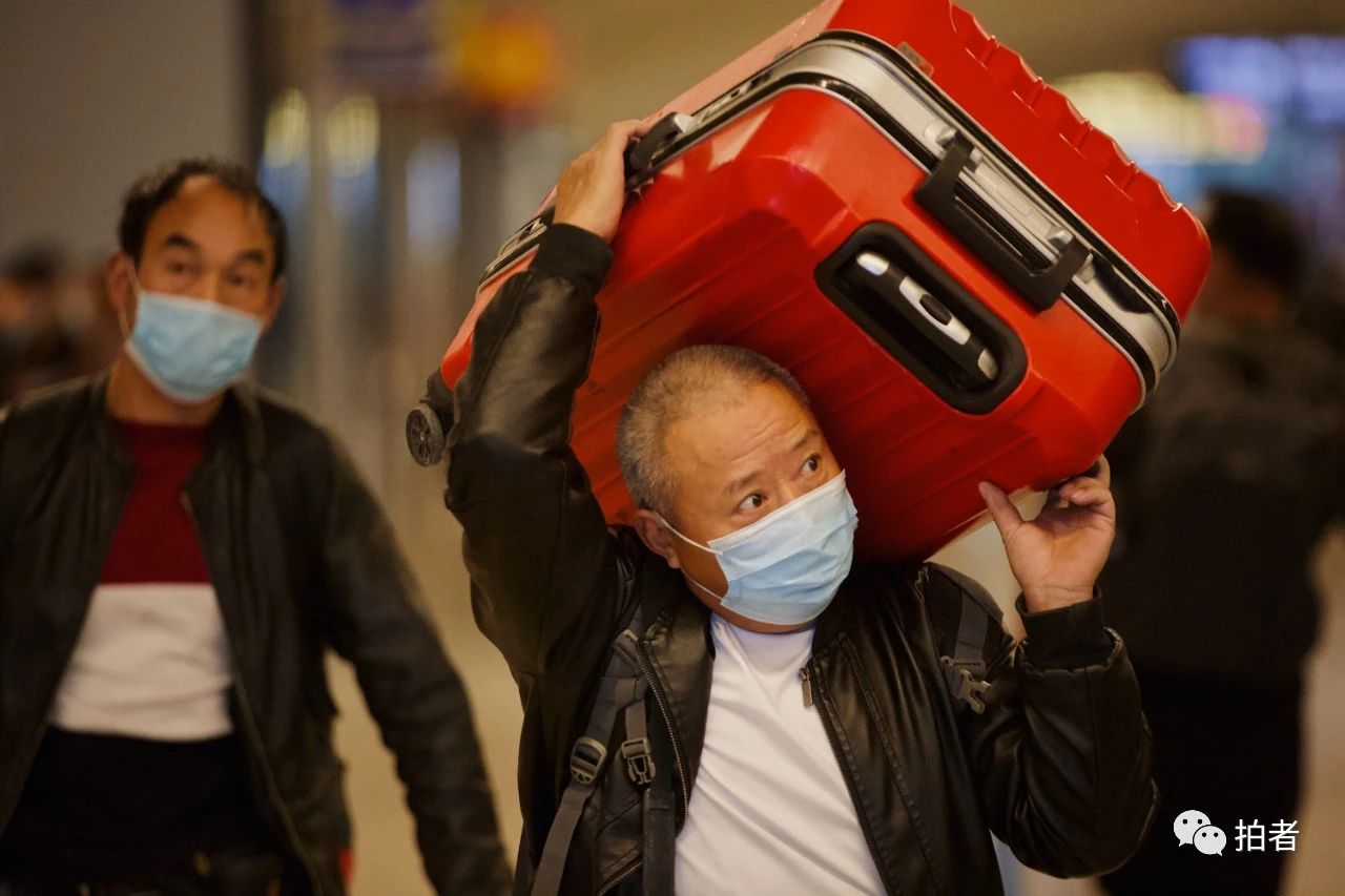 △ 4月5日,武汉火车站,“全副武装”的旅客。3月28日零时起,武汉市17个铁路客运站恢复办理到达业务。