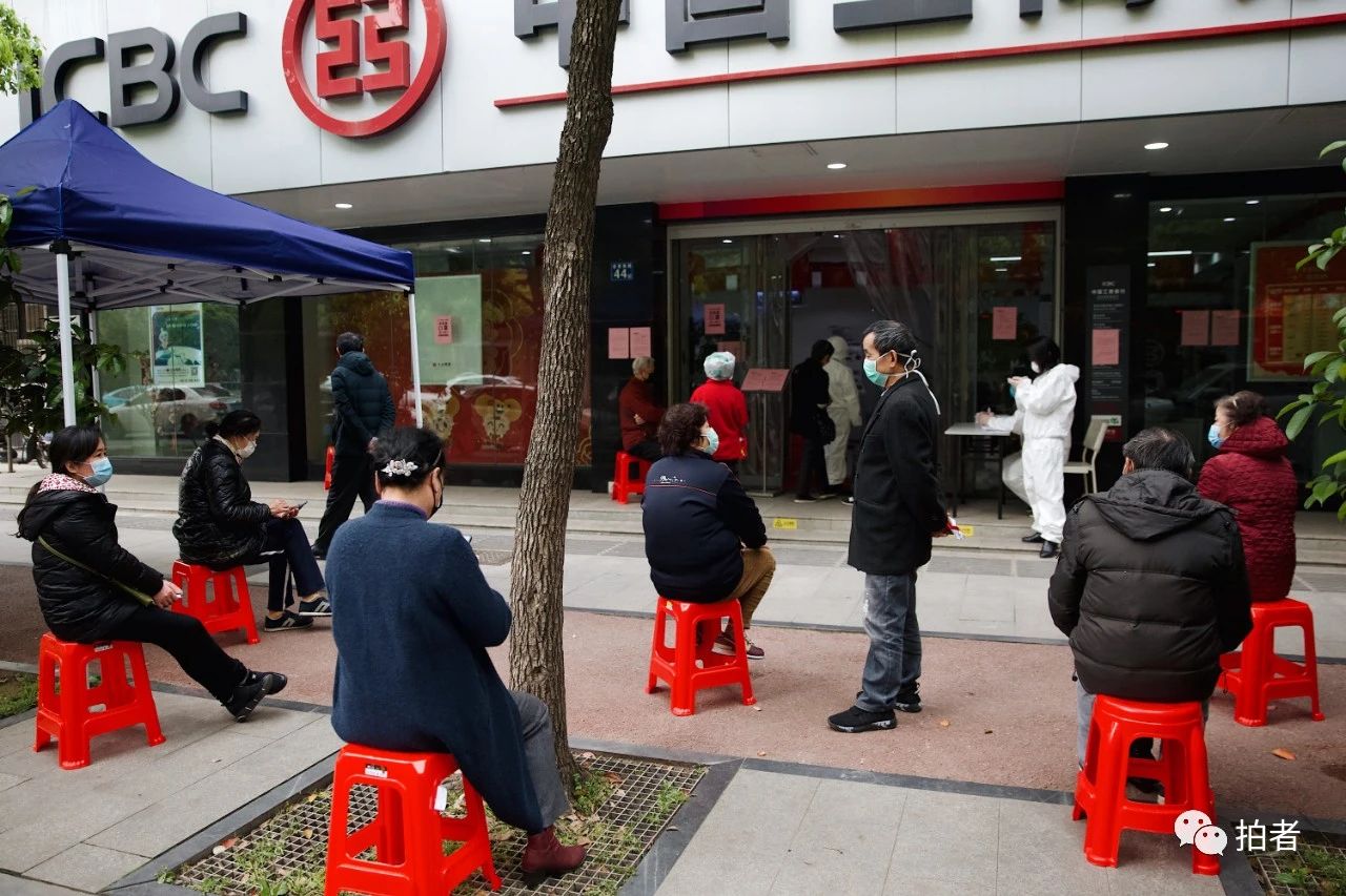 △ 4月3日,安居西路,居民在银行外排队等候办理业务。