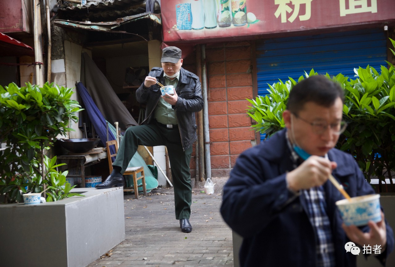△ 4月3日,西马路,江汉区新三巷社区的居民终于买到了小区门旁那味道熟悉的热干面,他说:“疫情后出门三次,买了三次热干面。”