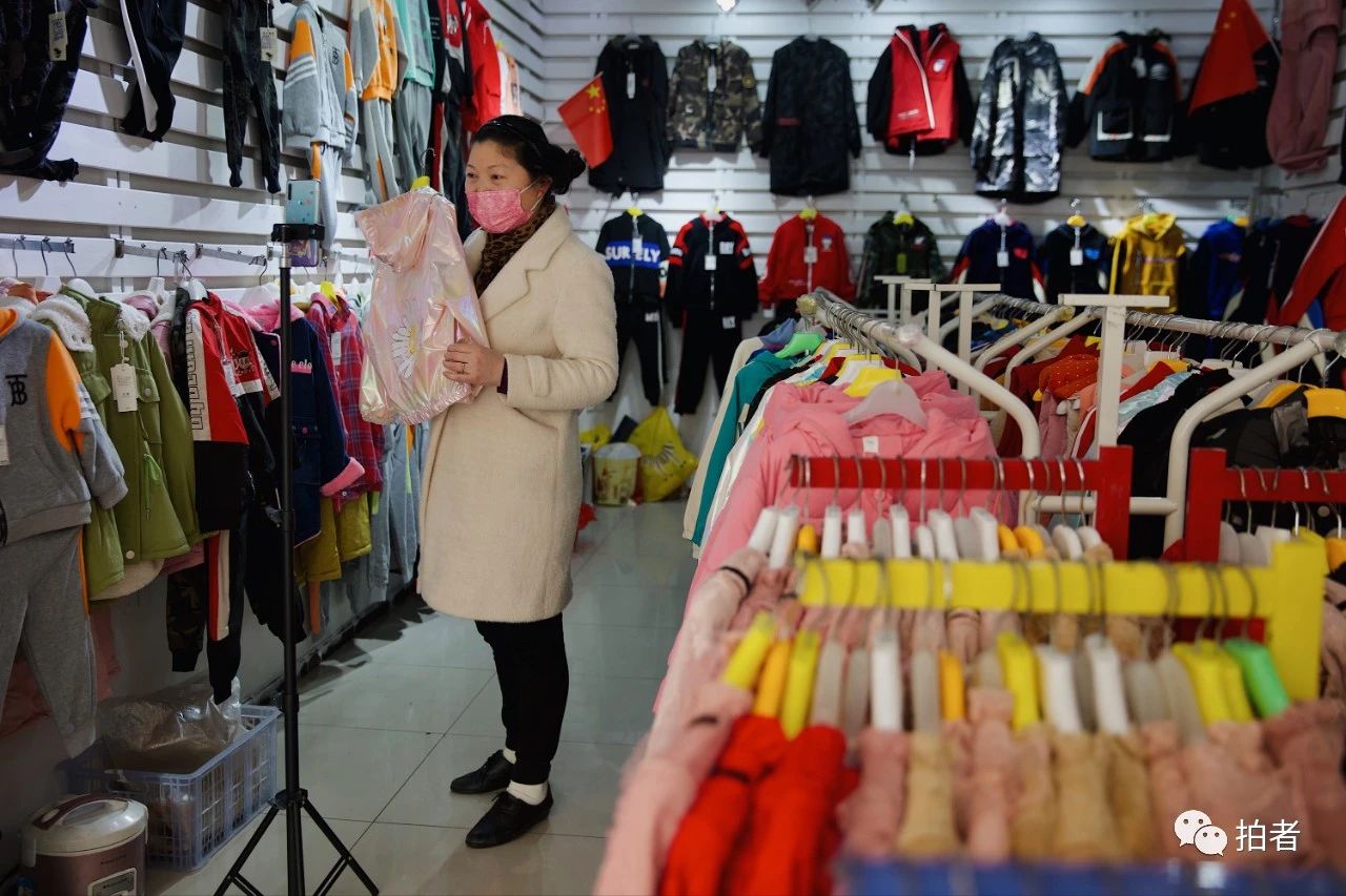 △ 4月1日,汉口北服装批发城,一名商户在直播卖货。