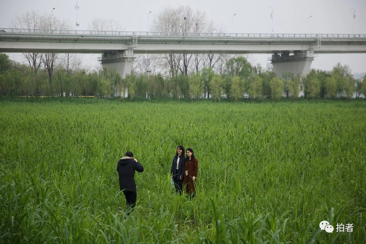 △ 4月2日,在江滩公园游玩的市民短暂摘下口罩拍照。