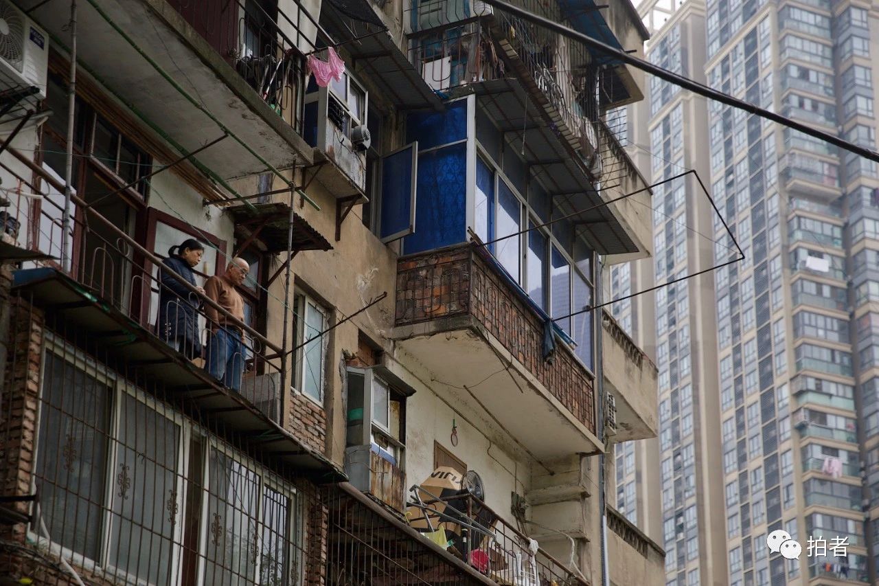 △ 4月3日,百步亭社区,邻居们隔着阳台聊天。