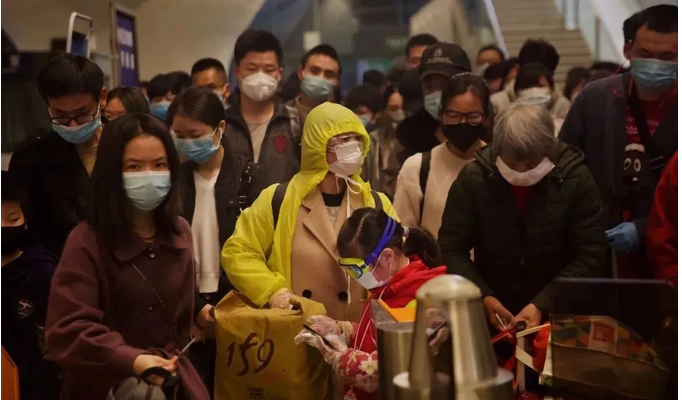 ▲4月5日,武汉火车站,“全副武装”的旅客。3月28日零时起,武汉市17个铁路客运站恢复办理到达业务。摄影/新京报记者郑新洽