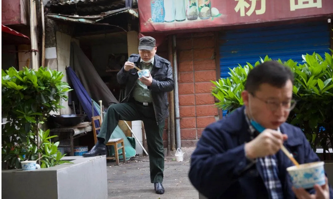 ▲ 4月7日,胭脂路,市民在路旁“过早”。摄影/新京报记者郑新洽