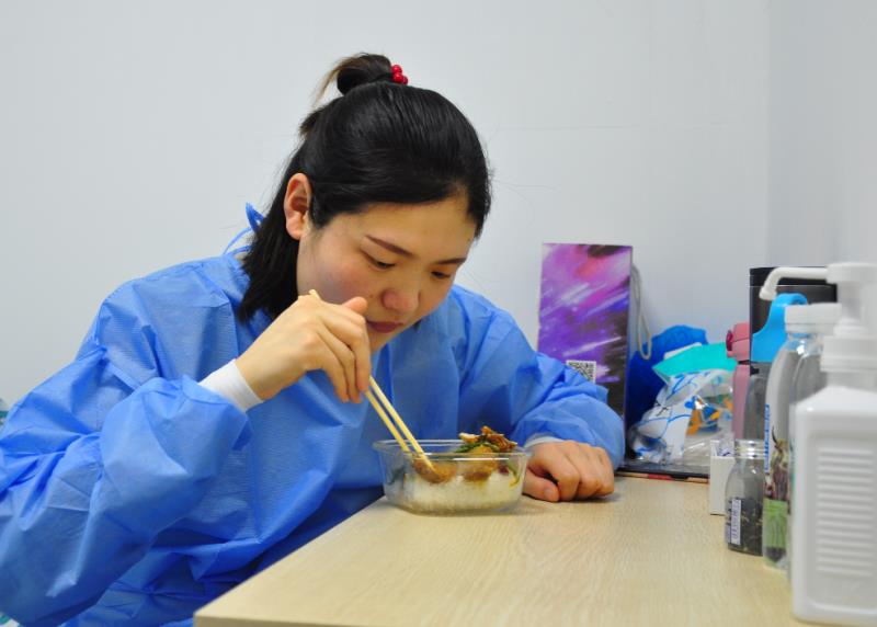 工作间隙,邱琳玉在办公室就餐。 受访者供图