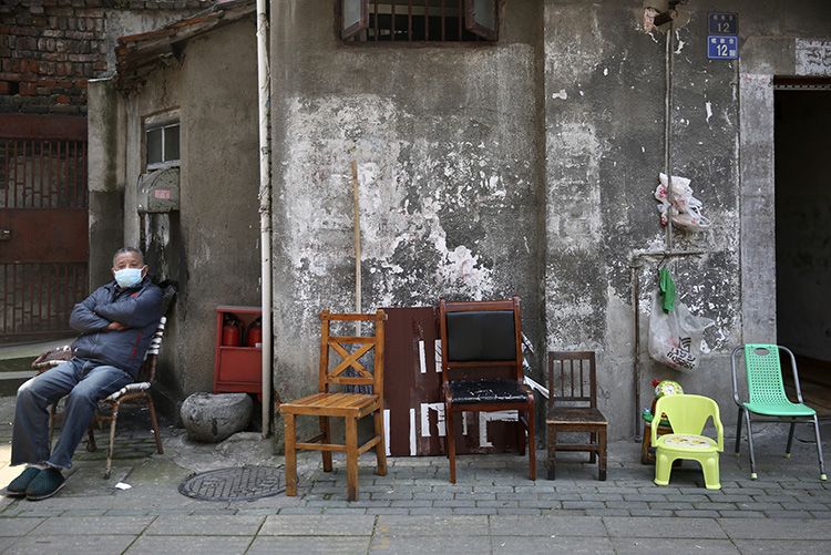 武昌区西厂口社区,家门口摆放着街坊们围坐聊天的一排小凳子。