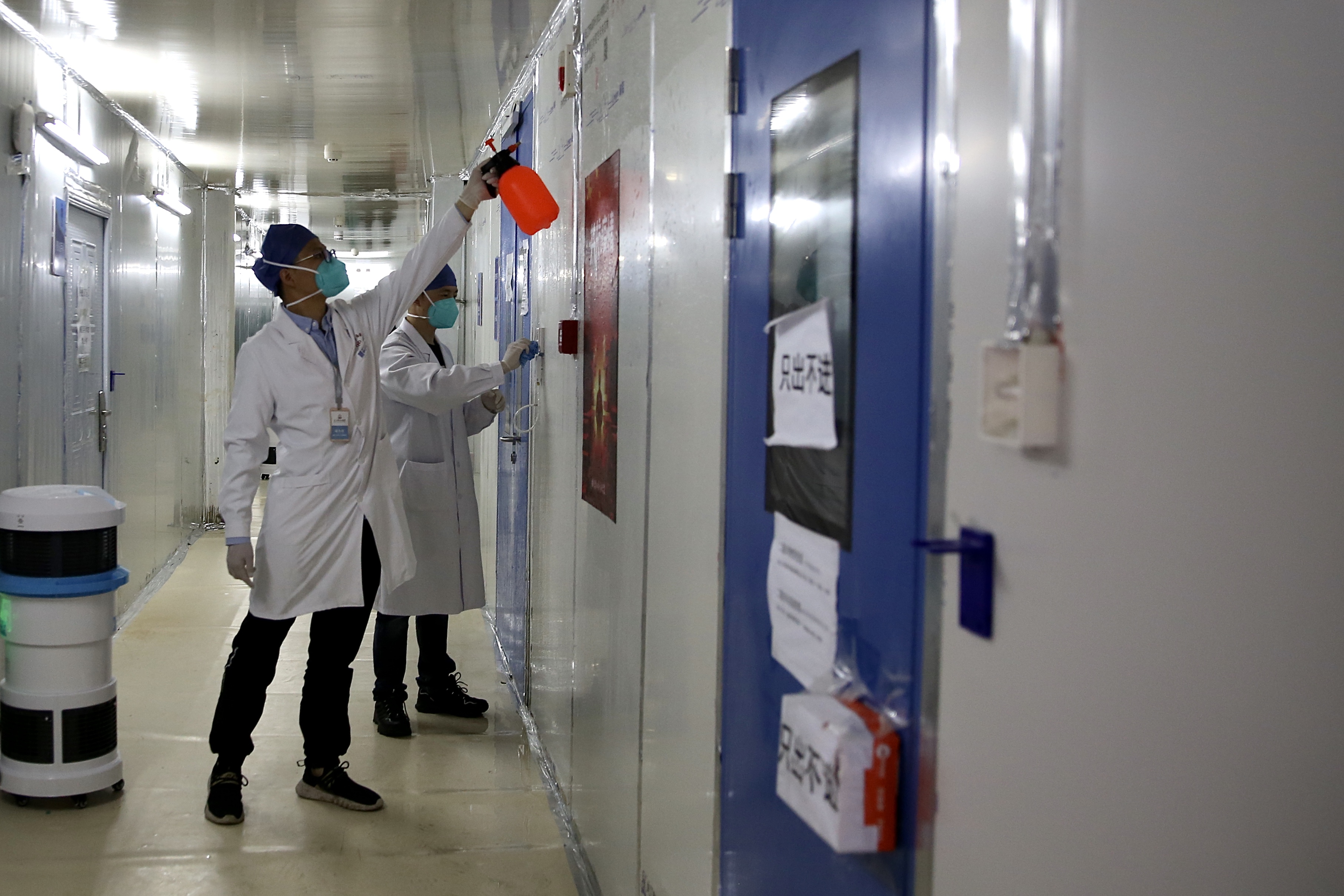 工作人员为“清零”后的雷神山医院进行消杀。新京报记者 郑新洽 摄