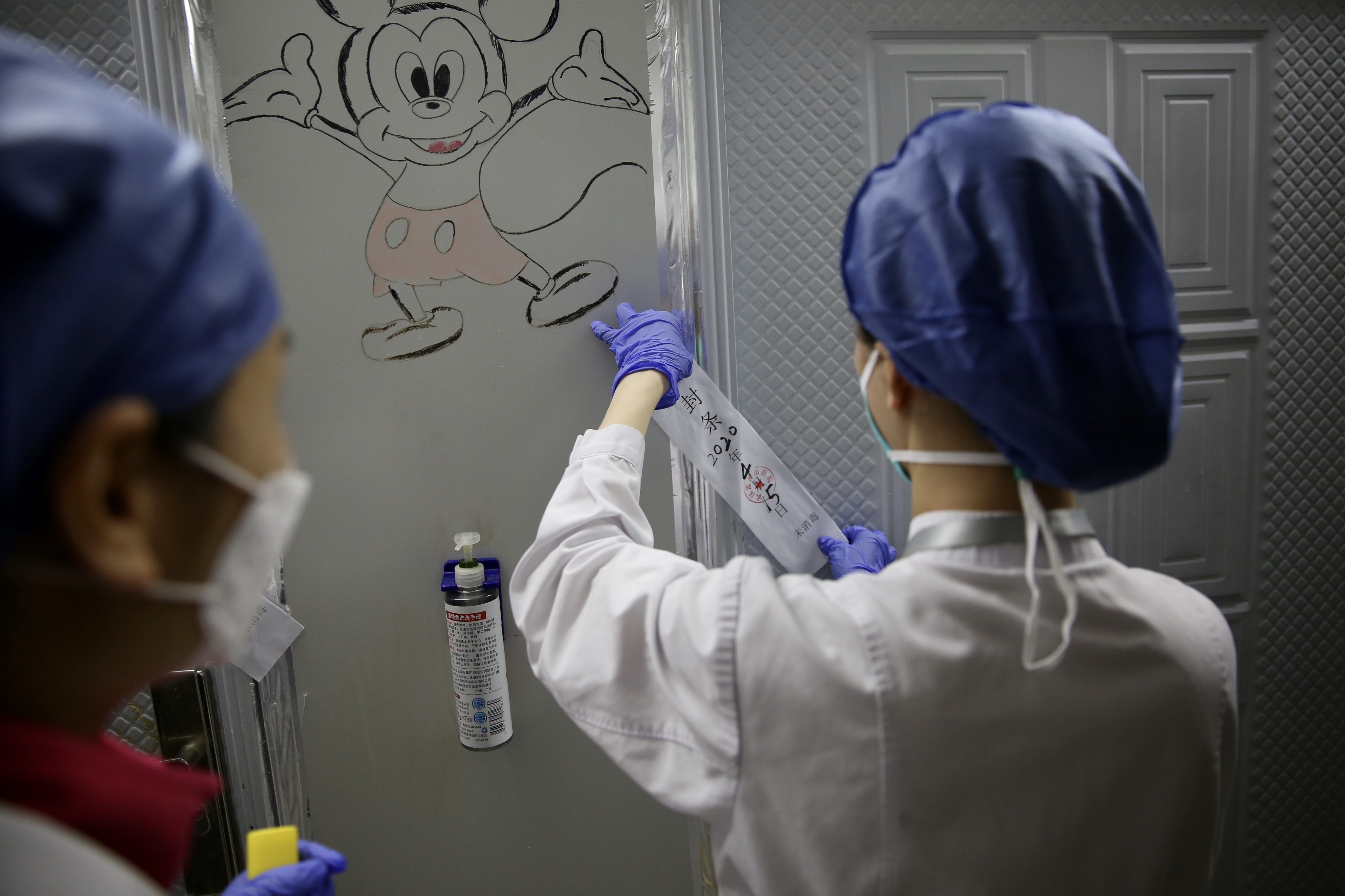 一名医护人员为病区贴上了封条。新京报记者 郑新洽 摄