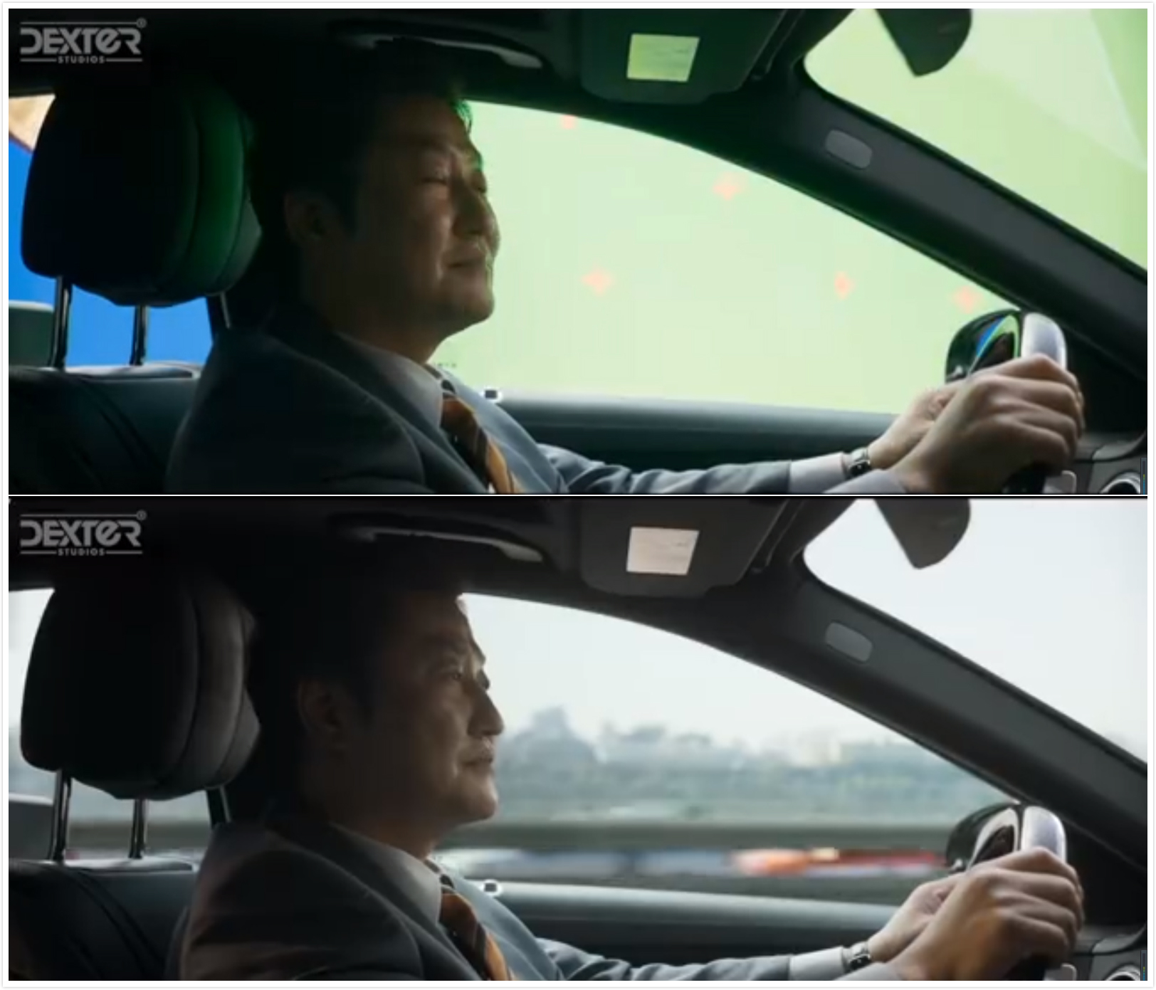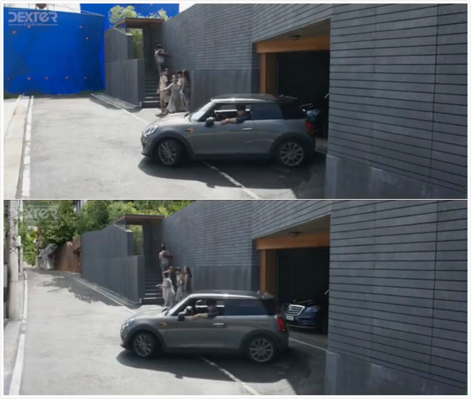图为影片《寄生虫》一些镜头特效前后的对比。