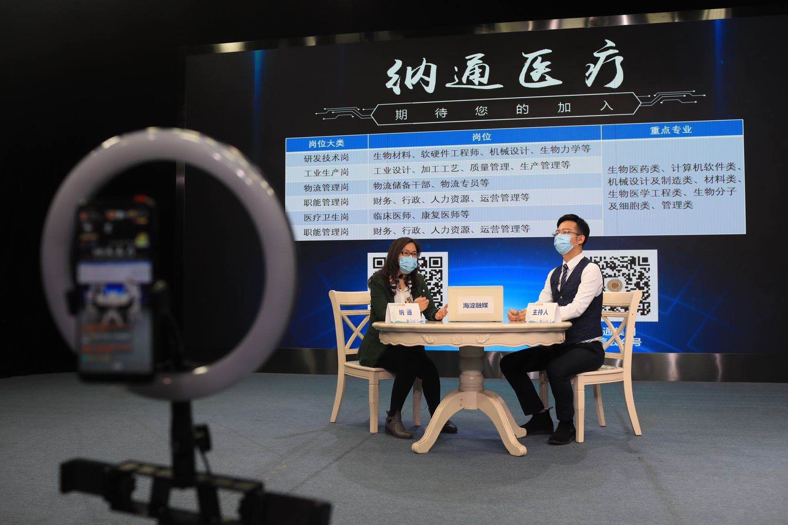 海淀区特别推出线上互动“云直播”活动。通过快手、微博一直播、央视频、今日头条等平台,把传统的线下招聘宣讲会开进直播间。摄影/新京报记者 浦峰