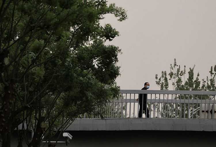 4月24日下午,北三环,市民在风沙中行走。