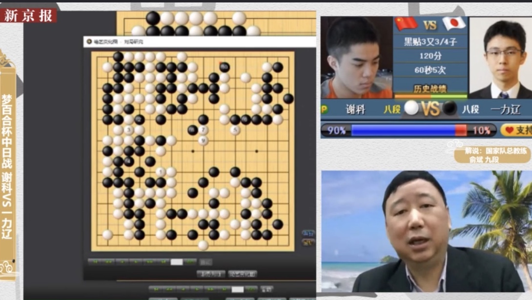 做客新京报APP、新京报体育微博、新京报体育快手账号担任解说嘉宾的国家队总教练俞斌称,围棋比赛机会稍纵即逝,谢科尽管一度很危险,但一力辽没能把握住机会,胜率自此未能翻盘,“进攻时虽然局势占优,但仍要谨慎小心,不然很可能一步棋走错被翻盘,那样人生就灰暗了。”