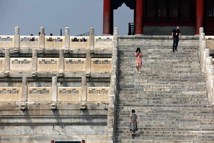 故宫前三殿区域,观众保持距离,走下台阶。摄 新京报记者 李凯祥