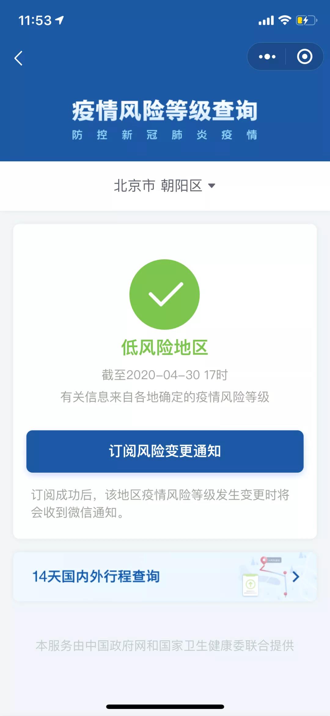 北京市朝阳区的“高风险”,让很多人知道了中国政府网的“疫情风险等级查询”小程序。在4月30日0点朝阳区变为“低风险”之后,这个系统也变得更加好用了。