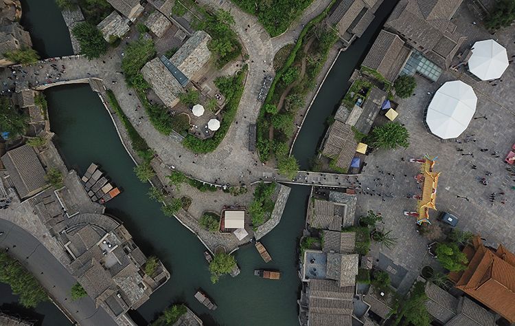 5月4日,航拍古北水镇水系景观。