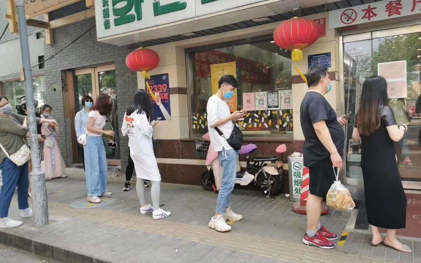 网红探店直播活动掀起了一波抢购热潮,华天延吉餐厅门口,顾客排队就餐。受访者供图