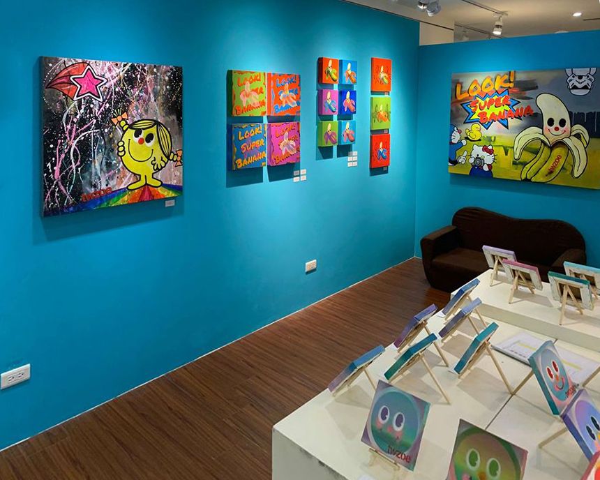曾经举办过空山基内地首个授权展的北京靠边走艺术空间,不仅为大家带来国外顶尖的潮流艺术家和艺术作品,也致力于发掘和推广国内潮艺新星。而“众神吃蕉”艺术展则是徐主音和长安嬉皮两位艺术家的联展。徐主音横跨抽象艺术画和潮流艺术领域,带来“与你香蕉”系列作品,标志性的呆萌笑脸和幽默的谐音梗让人忍俊不禁;而长安嬉皮是具有画家、导演等多重身份的跨界艺术家,画如其名,其风格自由奔放、手法细腻多变,画风鲜明个性。