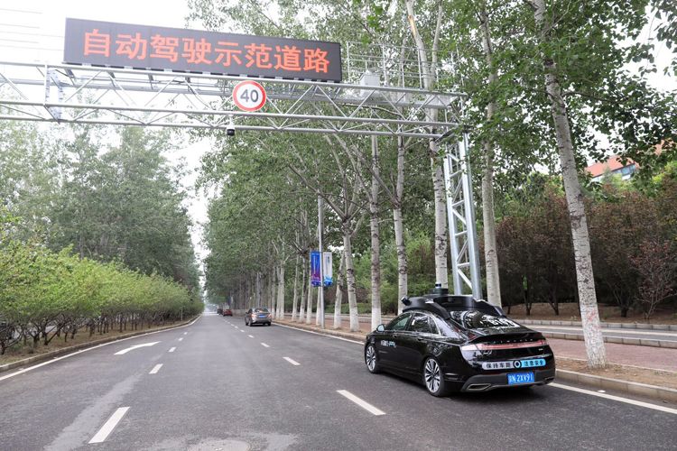 自动驾驶车奔驰在路上。