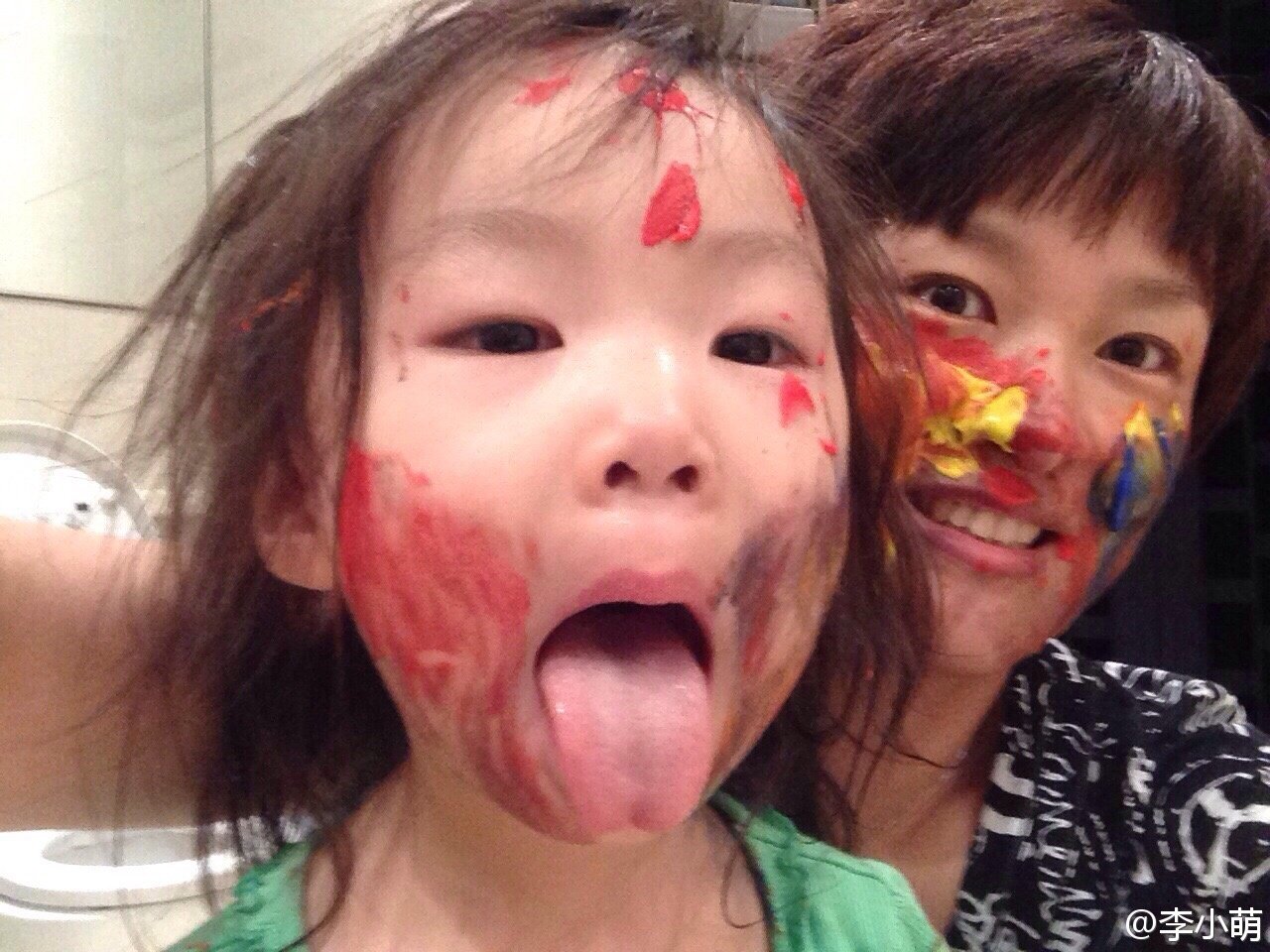 本本三四岁时与李小萌在家中玩颜料。受访者供图