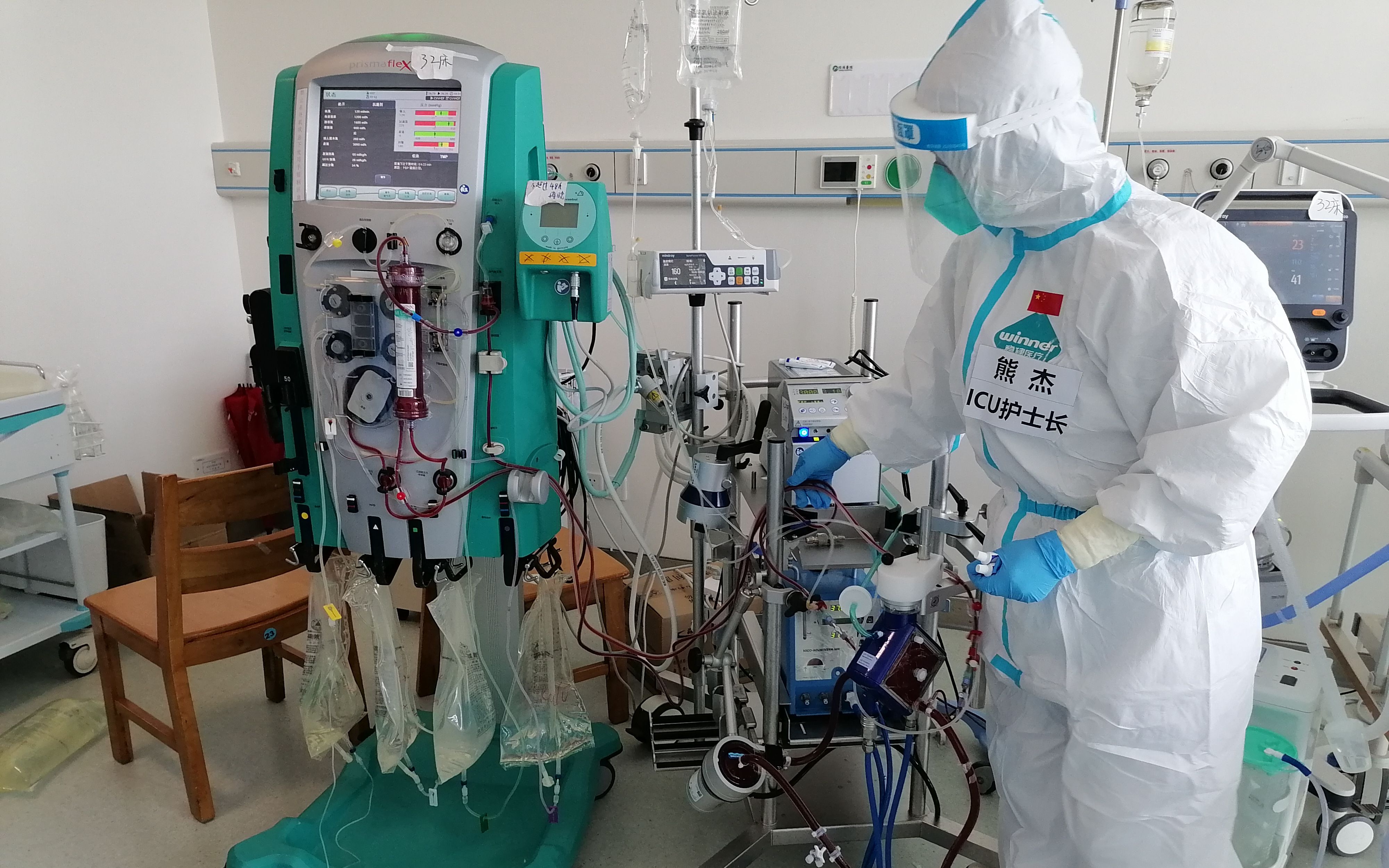 熊杰是护士长,保证病人和医务人员的双重安全成为她最大的压力所在。“这么多重症患者,最好是高年资的ICU护士去护理,但不可能这么多人。我们病区集中的护士,来自20多个科室,很多没有ICU经验。”