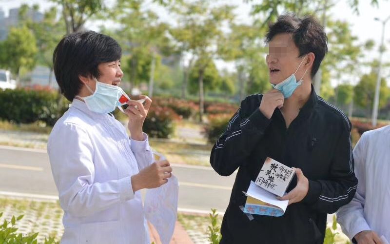 熊杰送一位患者出院。受访者供图