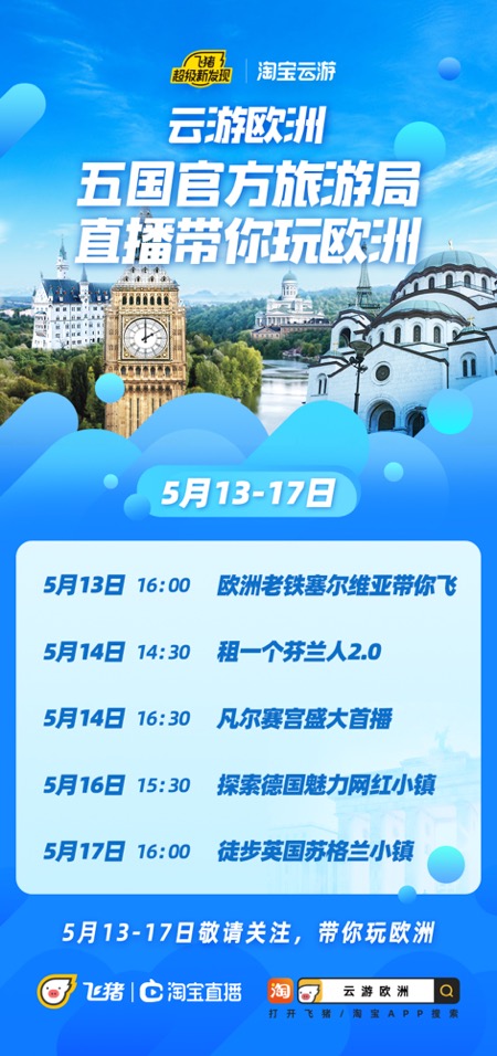 此外,本次“云游欧洲”还会把直播镜头带到芬兰、英国、德国,三国旅游局局长推荐的优质主播将带网友感受当地美景与文化。在此之前,淘宝直播“云游”系列已经解锁了布达拉宫、中国国家博物馆、甘肃省博物馆等,此次镜头来到欧洲,让受疫情影响无法出国旅游的人们能够在家“云旅游”。
