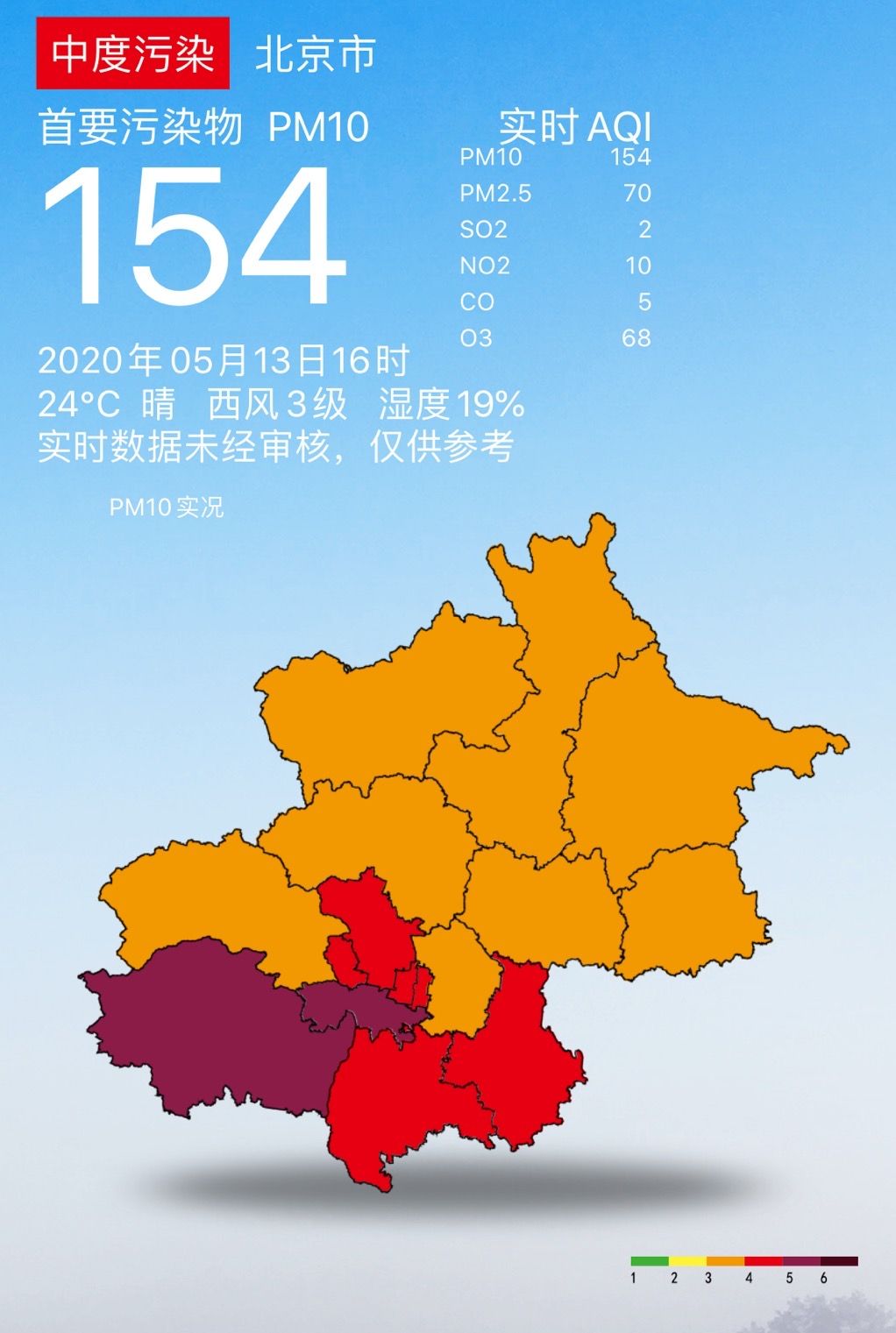 新京报快讯(记者 邓琦)受沙尘影响,5月13日16时,北京西南部达五级重污染,全市整体处于四级中度污染。