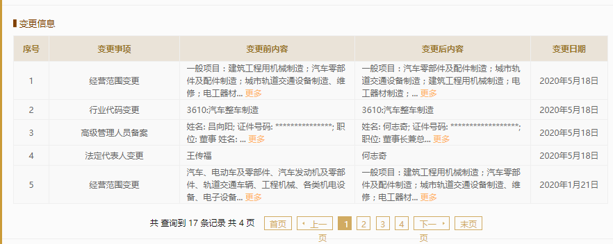 新京报讯(记者 魏帅)5月20日,国家企业信用信息公示系统官网显示,比亚迪汽车有限公司发生多项工商变更,王传福卸任法定代表人并不再担任公司董事长,接任者为何志奇,何志奇同时担任公司总经理职务。