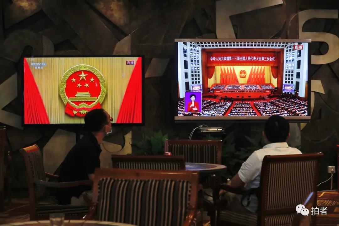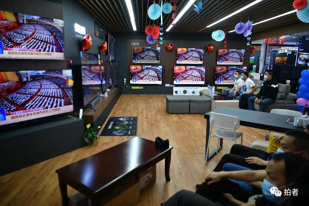 △ 5月22日,昆明,民众在家电卖场内观看第十三届全国人民代表大会第三次会议开幕会相关画面。图源:人民视觉