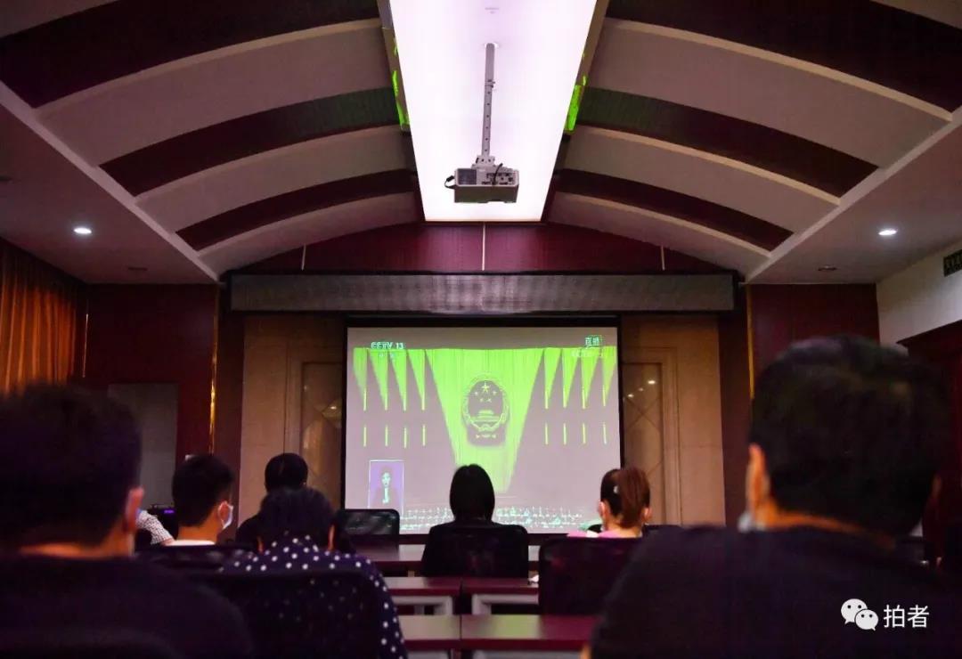 △ 5月28日下午,北京大兴区庞各庄镇御佳园社区居委会,党员和社区居民一起观看第十三届全国人民代表大会第三次会议闭幕会直播。摄影/新京报记者李木易