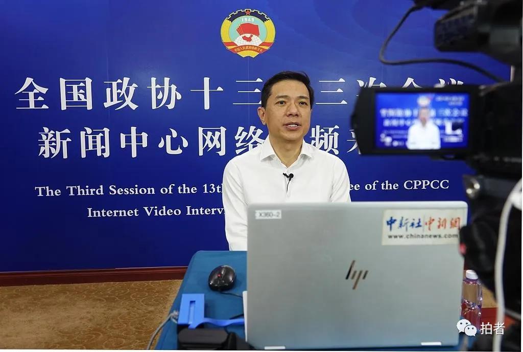 △ 5月21日,梅地亚新闻中心,全国政协委员在人民大会堂新闻发布厅通过网络接受媒体视频采访。摄影/新京报记者陶冉