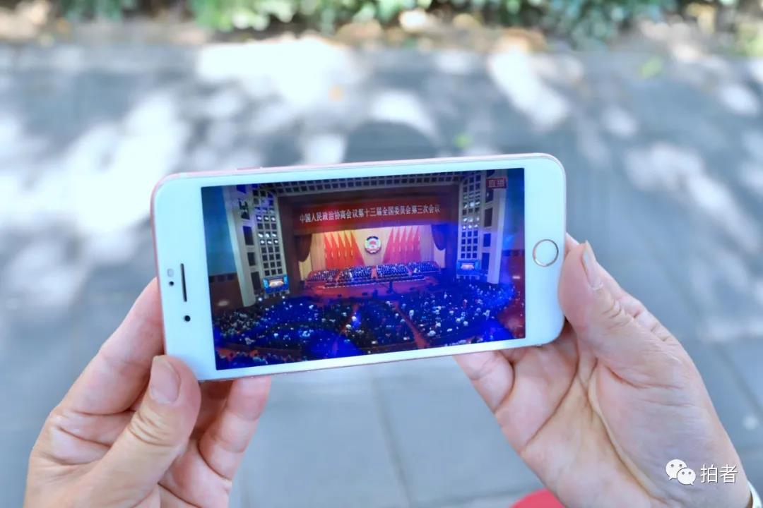 除了媒体记者外,全国各地的普通民众也通过自己的小屏幕,关心着这件与自身息息相关的年度大事。街头、卖场、地铁、公交、学校、工地……随处可见观看全国两会相关视频的民众。