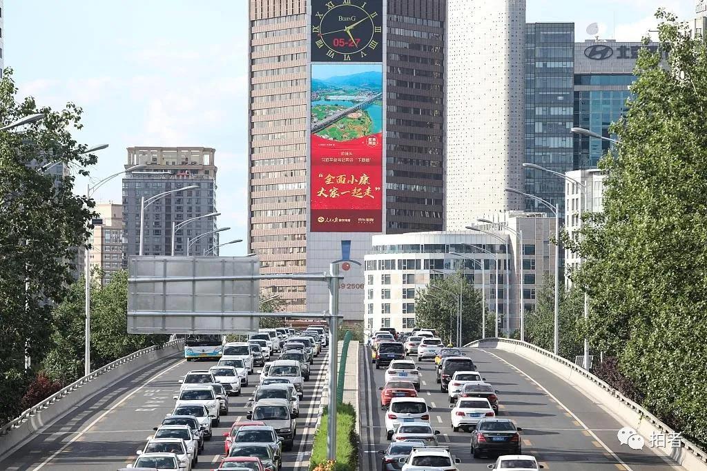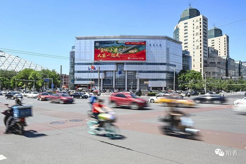 △ 5月27日,北京朝阳区,一处户外大屏幕滚动播放2020年全国两会“金句”。图源:人民视觉