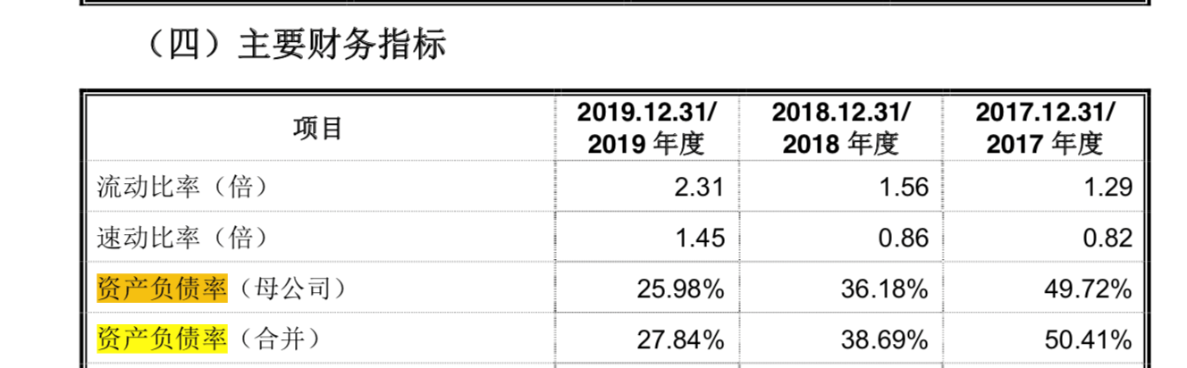 2019年末,合兴股份总负债为3.57亿元,较2017年末的6.3亿元下降56.6%。其资产负债率(合并报表)对应的也从2017年的50.41%下降到2019年的27.84%。