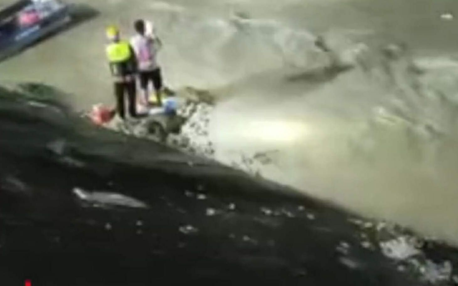 搜救人员在河面进行搜救工作。新京报“我们”视频截图