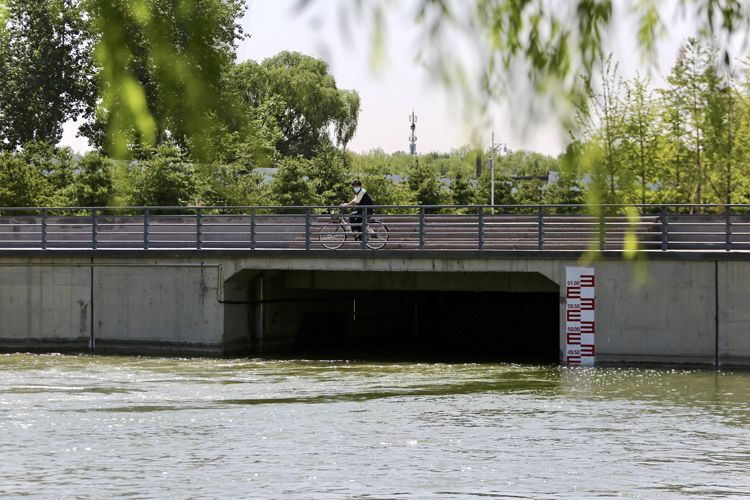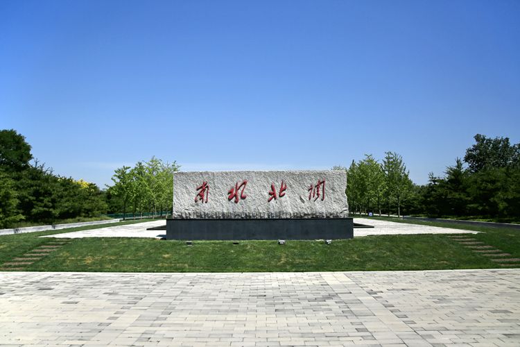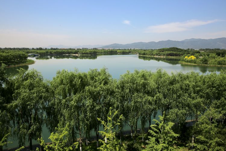 南水北调干线北京段明渠旁的团成湖调节池。