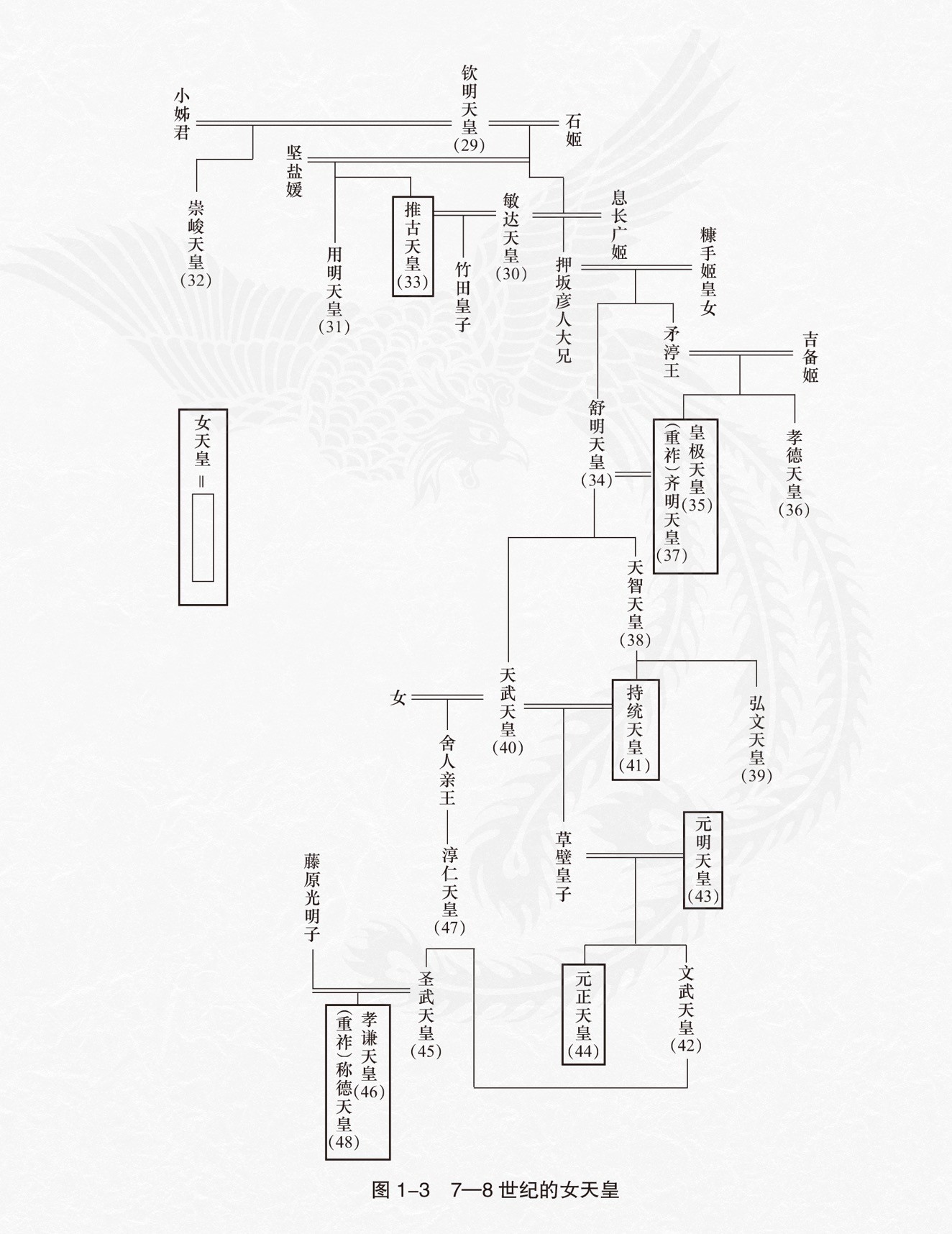 7-8世纪的女天皇。图片来源:《菊花王朝:两千年日本天皇史》(胡炜权著,浙江人民出版社2020年5月版)