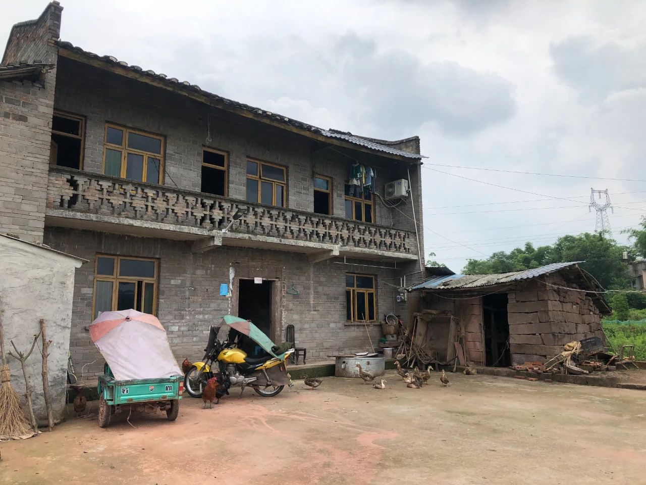 每天下午三点到五点,村里的广播会定时播放音乐和资讯。家人们会搬个凳子到院坝来听,这是一天中这个家里最充满生机的一刻:鸭子和鸡群从这头跑到那头,一只瘦弱的灰色猫咪会跳上桌子翻找遗留的食物,掉毛的黄狗趴在猪圈门口。
