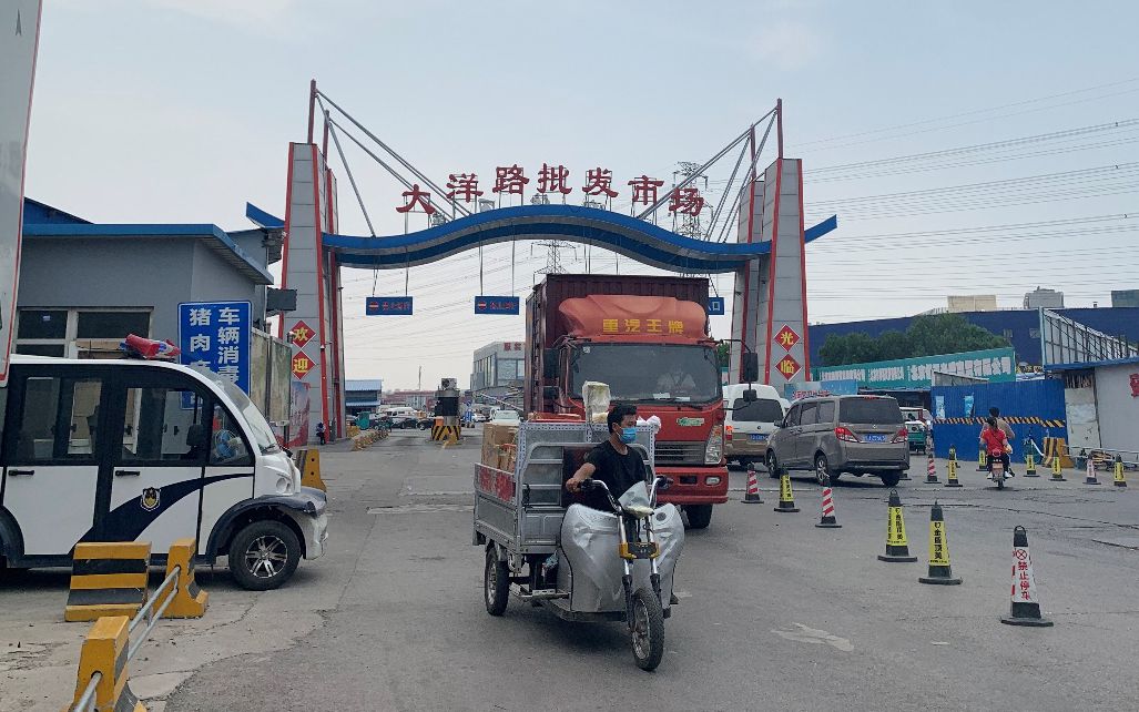 新京报讯(记者 耿子叶)6月13日,位于北京朝阳十八里店乡的大洋路批发市场,采购人员车辆进出繁忙,从早上开始就迎来一波高峰。目前,果蔬肉蛋类商品价格及供应量基本稳定。市场相关安保人员告诉记者,市场已经提升了防控措施。