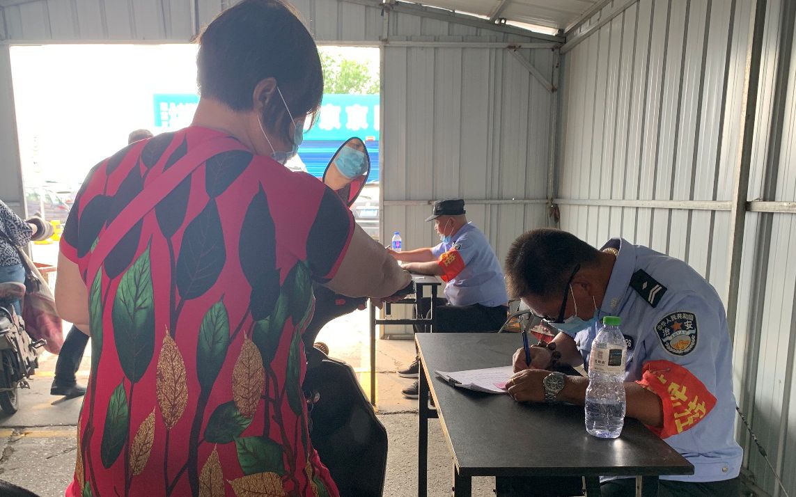 下午4点多,两位戴着疫情防控红袖标的人员还在忙碌着。