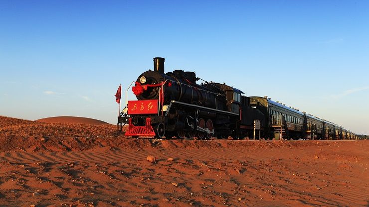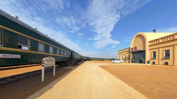 景区选用的蒸汽机车为1958年中国第一条沙漠铁路包兰铁路通车时,使用的蒸汽机车,车厢内部创意为丝路风情,并配有火车酒吧、火车餐厅、空调、独立卫生间等设施。