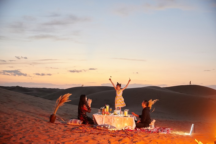 疫情期间,景区为游客实行门票全免、项目半价等优惠政策。为满足旅游的多样性、舒适性,景区还推出了防止游客聚集的沙漠晚餐、沙漠茶歇、沙漠火锅等一系列特色产品,独创的沙漠焖鸡更是别具风味。