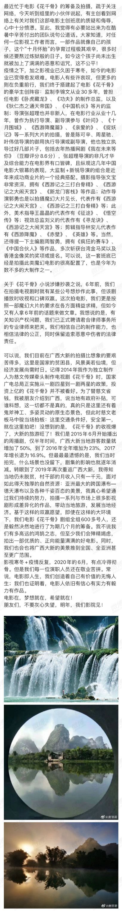 电影版《花千骨》制片人回应争议,称主创班底是高配置