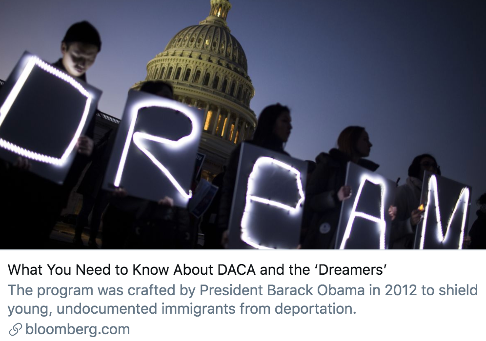 关于“童年抵美者暂缓遣返”和“梦想生”,你需要知道什么?/ 彭博社报道截图
