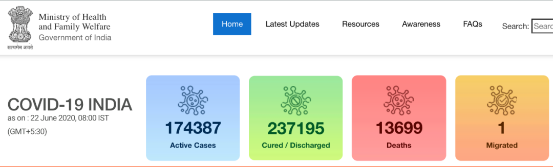 在死亡数这方面,截至当地时间6月22日8点,印度累计新冠肺炎死亡病例达13699例,位列全球第八。印度新冠肺炎死亡率大约为3.2%,一直保持在相对较低的程度。相比之下,美国死亡率大约为5.2%,意大利为14.5%。